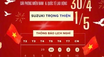 THÔNG BÁO NGHỈ LỄ 𝟯𝟬/𝟬𝟰 – 𝟬𝟭/𝟬𝟱 Suzuki Trọng Thiện trân trọng thông báo Lịch nghỉ và làm việc trở lại dịp lễ 30/04 – 01/05 như sau: Thời gian nghỉ: Từ Thứ Tư – Ngày 30/04/2025 Thời gian làm việc trở lại: Thứ Sáu – Ngày 02/05/2025 Để có một kỳ nghỉ lễ An…
